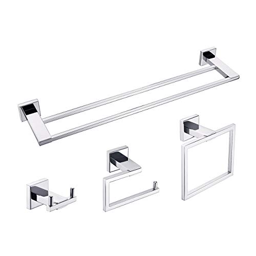 Professional reviews from industry experts Miyili 4-Pieces Bathroom Hardware Set Wall Mounted Polished Stainless Steel - Includes Double Towel Bar, Towel Ring, Toilet Paper Holder, Robe Hook, BS04C4