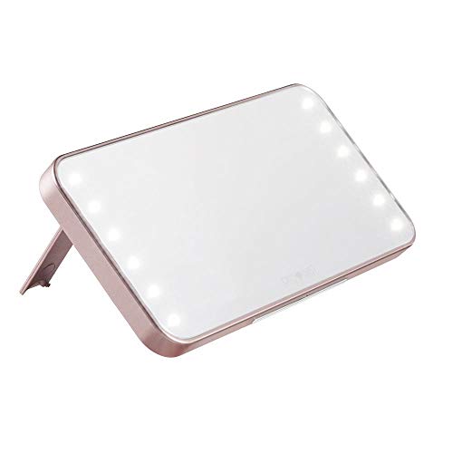 lowes Riki Cutie Rechargeable Portable Vanity Mirror with HD LED Lighting, Three Light Levels, USB Charging and Carrying Case (Rose Gold)